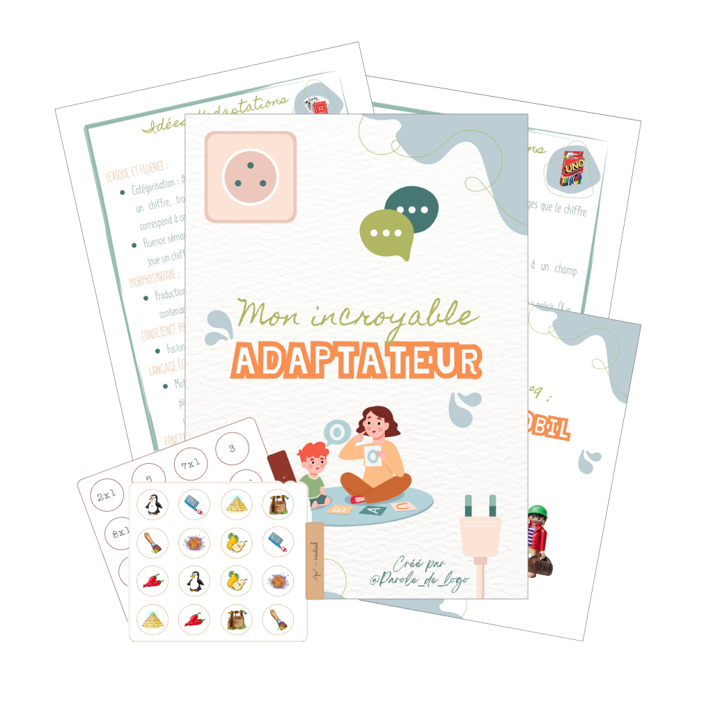 L’adaptateur est un document destiné aux orthophonistes et logopèdes, conçu pour favoriser l’exploitation thérapeutique de jeux du commerce et de matériel courant du cabinet.